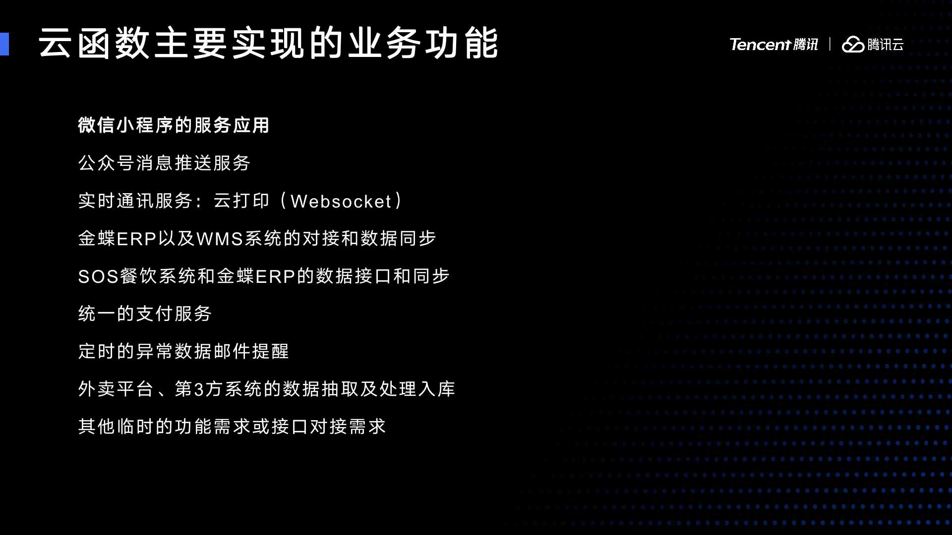 我们用云函数实现的业务功能非常多。