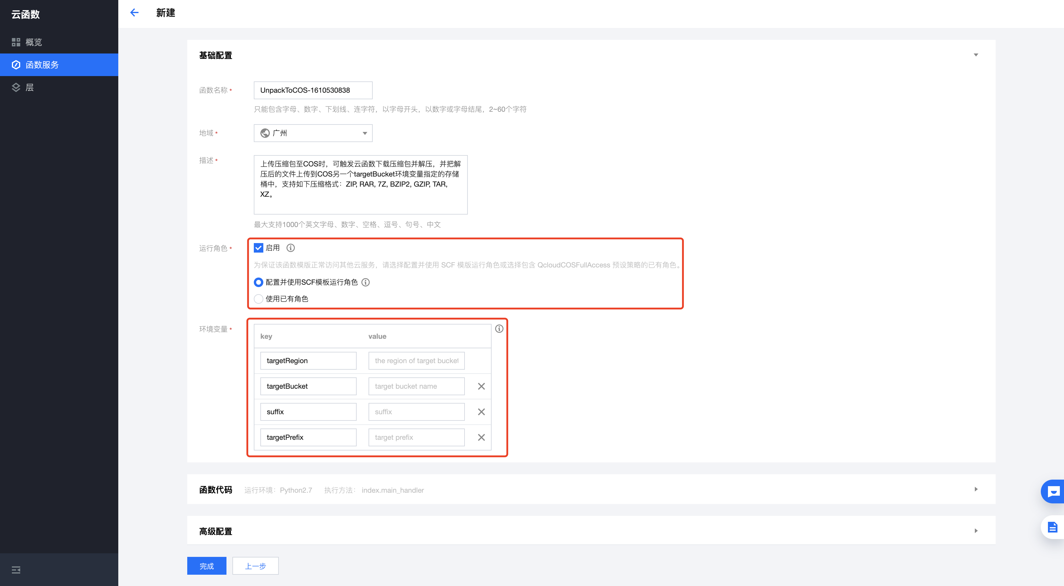 按配置引导完成函数创建即可完成模版正常运行所依赖的全部函数配置。