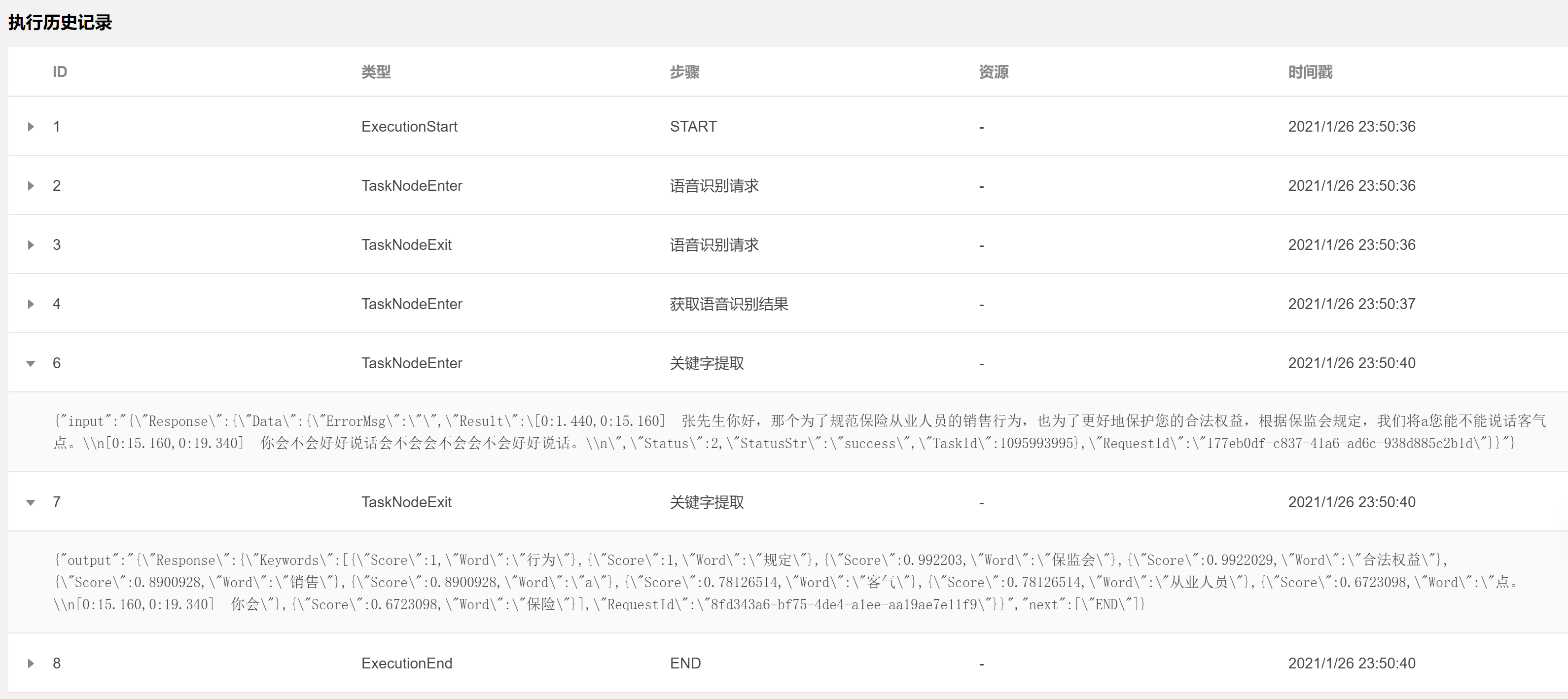本文介绍如何通过工作流 ASW 编排语音识别 AI 服务,将一段离线录音文件进行文字识别后,将输出的识别字段进行关键字提取。