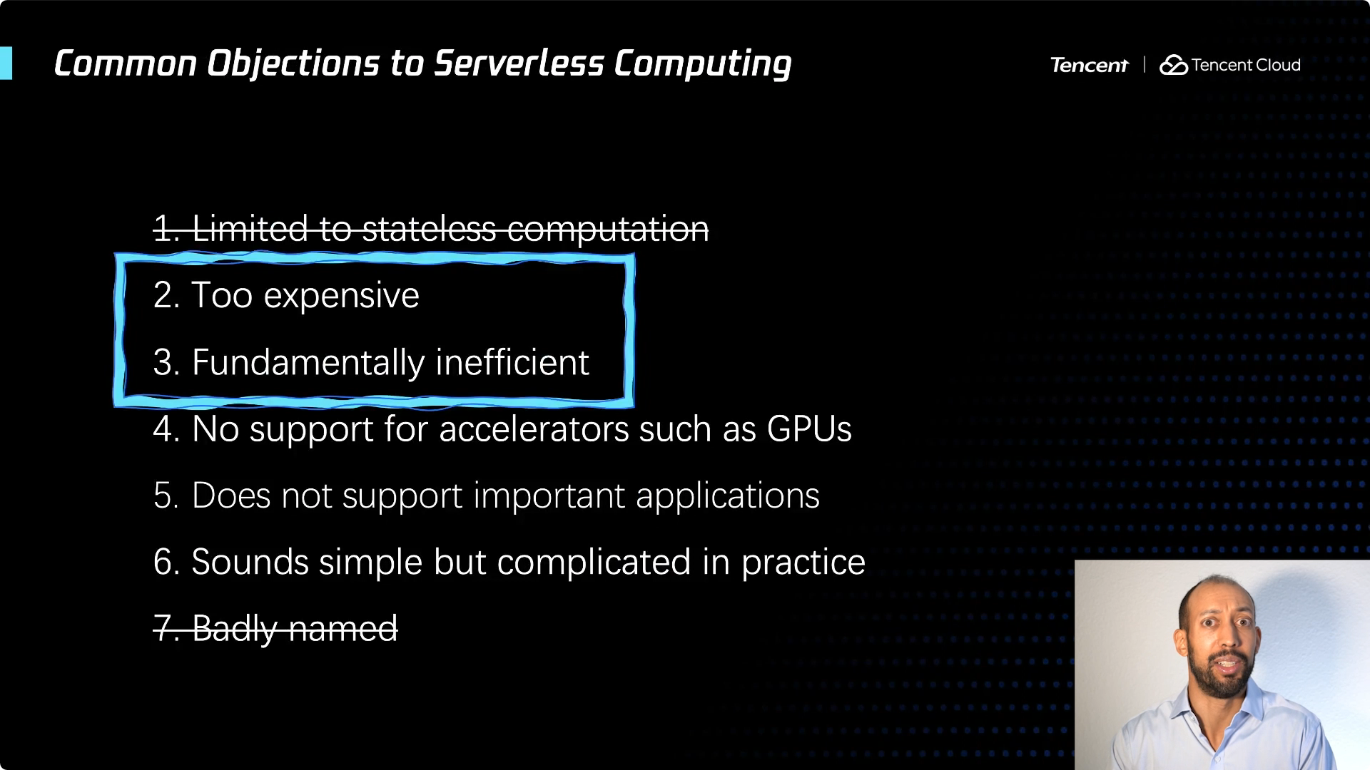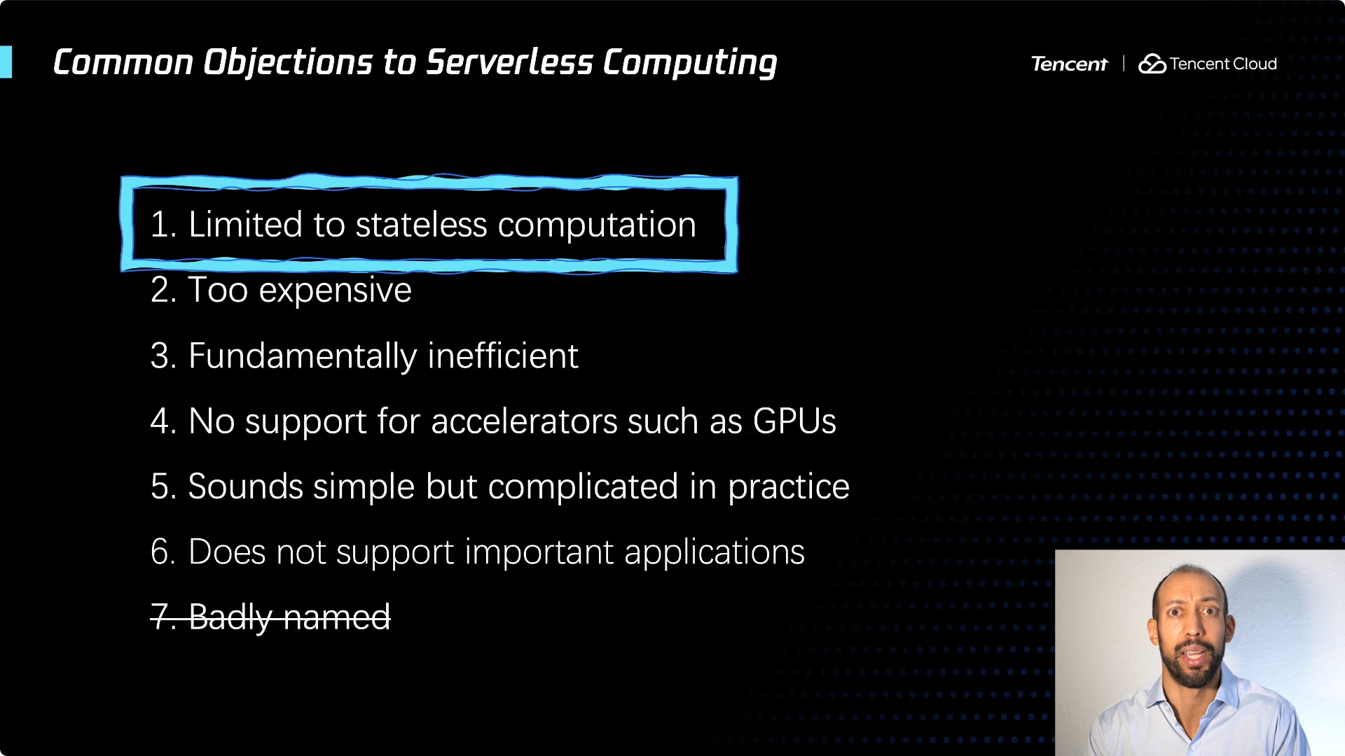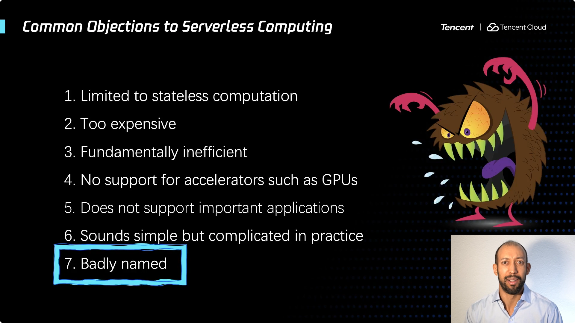 如果从学术界的角度,我可以给你们一些成果的展示,几乎所有这些反对观点描述的问题,都取得了重大进展。但仍有一个还在坚持 ... Serverless 这个名字不好。