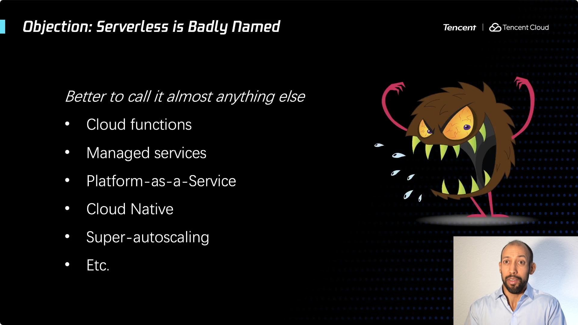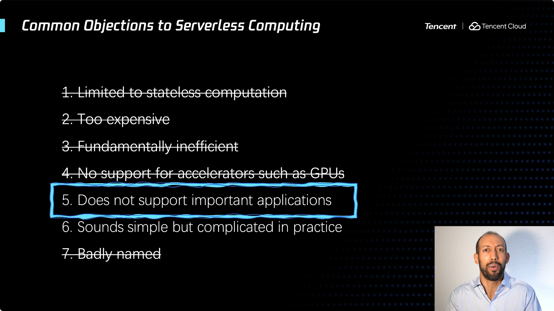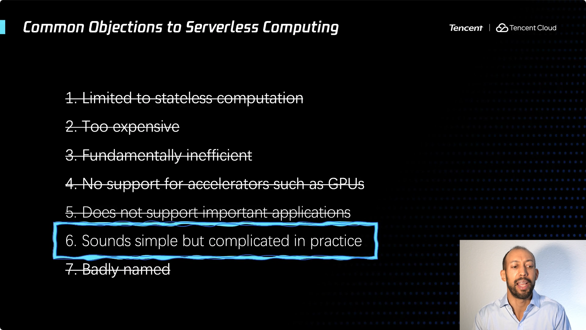 如果从学术界的角度,我可以给你们一些成果的展示,几乎所有这些反对观点描述的问题,都取得了重大进展。但仍有一个还在坚持 ... Serverless 这个名字不好。