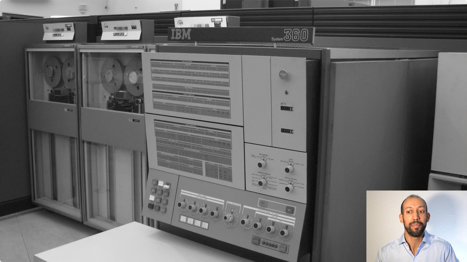 为了让大家更好的理解,我将再次倒转时光,不是回到几千年前,而是回到1967年。这是IBM System 360大型计算机,它是一台非常令人印象深刻的机器。当时为这些机器写的代码,如今仍在很多公司运行。