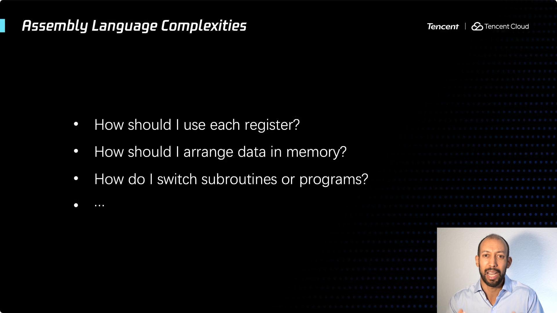 为了说的更加具体,我就像这样对比一下。用汇编语言编程,要处理寄存器的名称,要处理特定的内存单元和地址。当你使用高级编程语言时,这些东西就消失了对吗?你永远也看不到寄存器,编译器会完全处理它,将其隐藏起来,包括内存地址。在一些不那么高级的语言 (如C语言) 中你还会看到这些。但可以肯定的是,一旦你使用了像 Java 这样的语言,内存地址就完全消失了。如果谈及云服务,也会有服务器地址,我的观点是这不属于云,它将消失!