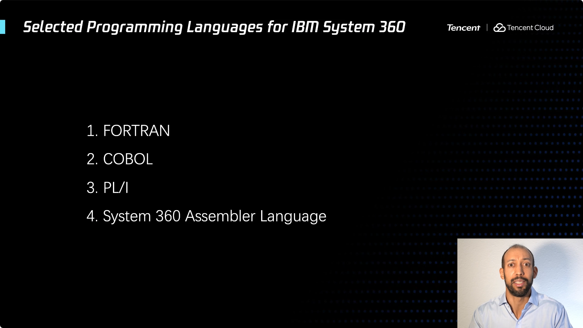为了更深入地了解这一点,再了解几种通常与 System 360 一起使用的编程语言。Fortran 用于数值计算,Cobol 用于商业应用程序,PL/1 作为一种通用的编程语言。而对于那些真正需要高性能的应用程序,需要通过 System 360 汇编语言实现。